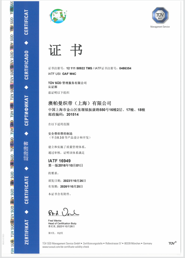 澳帕曼织带(昆山)有限公司是德国E.澳帕曼在中国设立的第一家全资子公司。